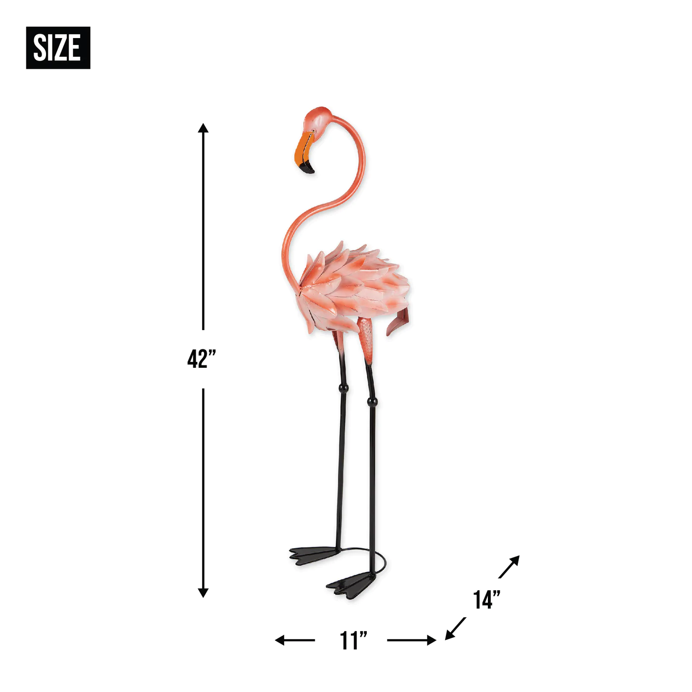 • Brighten your favorite space with a luscious touch of the tropics. These life-sized metal flamingo sculptures make a colorful splash that's a pure delight.