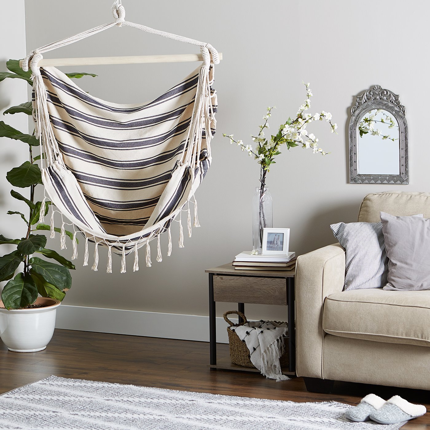 • Relax in style with this gorgeous furniture! Great for your patio, garden, living room, or bedroom, this hammock will serve as both beautiful and functional décor anywhere you put it.