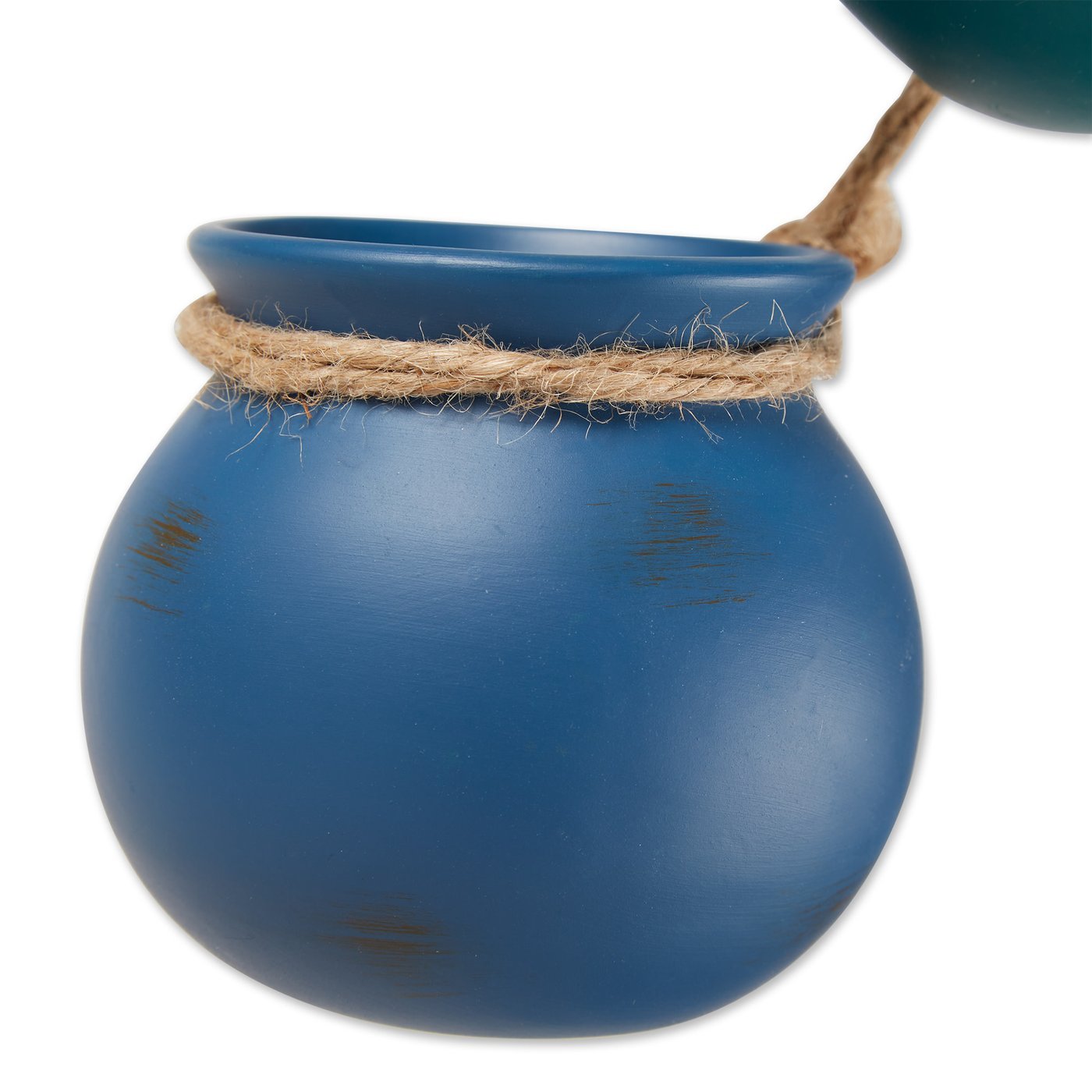 • Straight from the kitchen of a Santa Fe gourmet, this darling decoration recalls the fabled cooking pots treasured for generations in the Southwest. Four graceful ocean toned vessels with jute hanging loop are ready to brighten any corner.