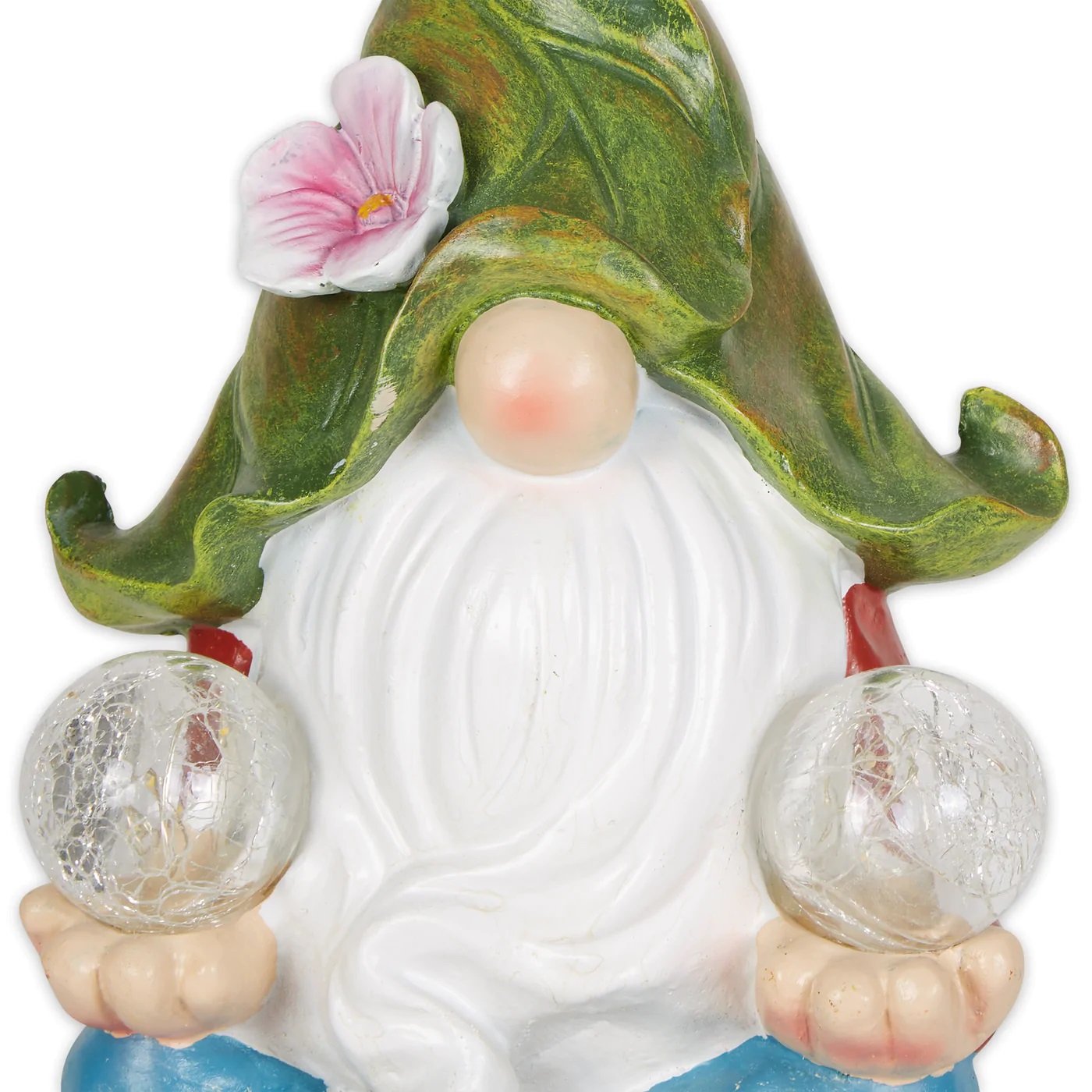 • Make your garden feel whimsical and filled with magic and wonder with this adorable gnome statue. He's sitting peacefully holding two crackled solar orbs that will softly light your garden in the evening with the help of the solar panel hidden in hat made of garden leaves.
